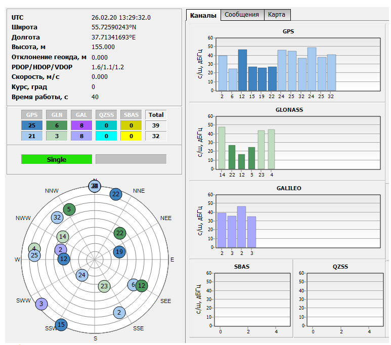 - Поддержка двух диапазонов GNSS (L1, L5);