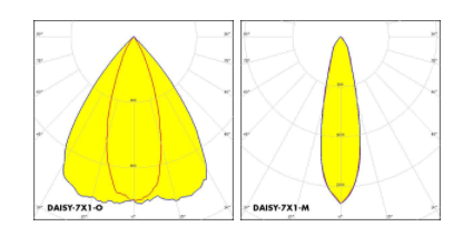 Новая линза DAISY-7X1-O имеет овальный луч 25 x 70°, который идеально подходит для скользящего акцентирующего освещения, акцентного освещения, рабочего освещения и освещения торговых помещений с высокими потолками, офисов и архитектурной среды.